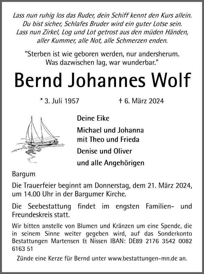 Bernd Wolfgestorben am 6. März 2024